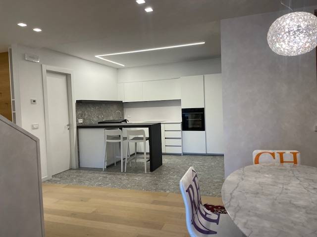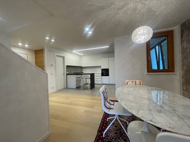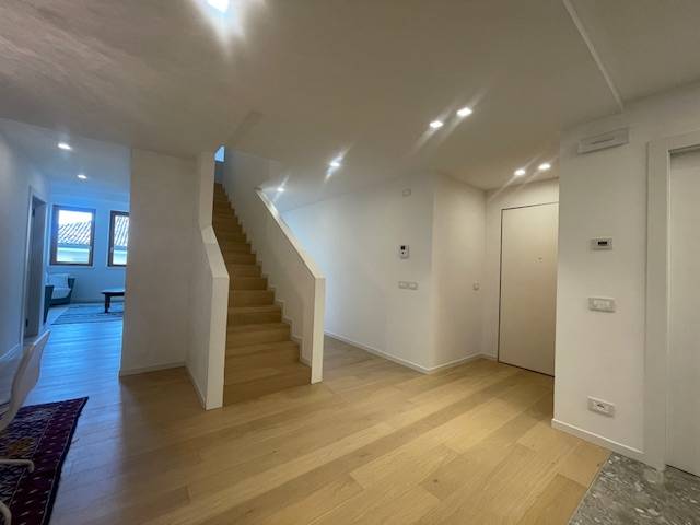 Eleganza e raffinatezza contraddistinguono questo Appartamento su due livelli in classe A1, composto da ingresso, cucina con terrazzo verandato, zona pranzo, salotto, bagno, scale in legno per accedere al piano secondo dove troviamo due camere e due bagni, un terrazzo; al piano scantinato cantina e posto auto coperto.