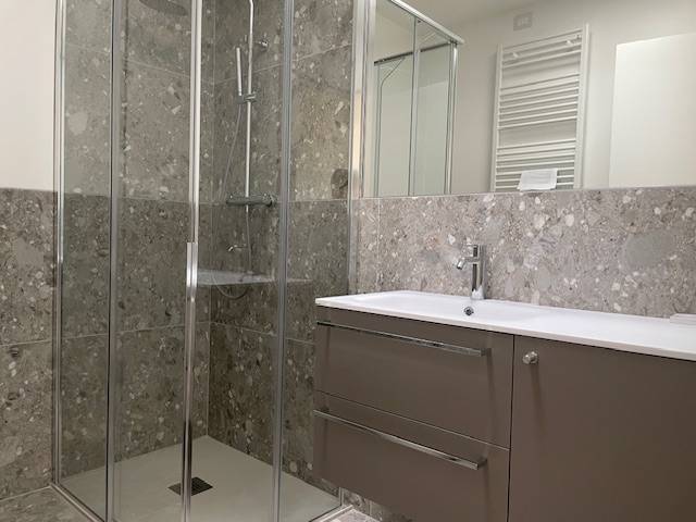 Il riscaldamento, a pavimento, è centralizzato con contacalorie, entrambe i piani dell'Appartamento sono climatizzati.